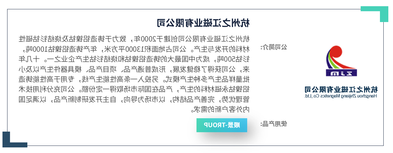 之江磁业近几这几年来来开发速度快,日渐在国内的外市场中稳生根基,开发的势态急剧飞涨。腺瘤开发有的是个工业的企业公司无法松动的工作理念,但在工业的企业公司步歩高升的道马路上,里面不合理,不良好的治理原则经常会使各工业的企业公司治理者犯难。都,之江磁业也出现合适状况: